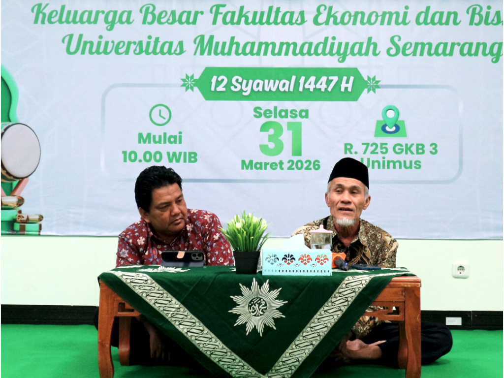 Fakultas Ekonomi dan Bisnis Universitas Muhammadiyah Semarang (FEB UNIMUS) menyelenggarakan kegiatan Halal Bihalal pada Selasa, 31 Maret 2026. Acara ini berlangsung di Ruang 725 Gedung Kuliah Bersama (GKB) 3 UNIMUS dan dihadiri oleh seluruh dosen serta tenaga kependidikan (tendik) di lingkungan FEB UNIMUS.